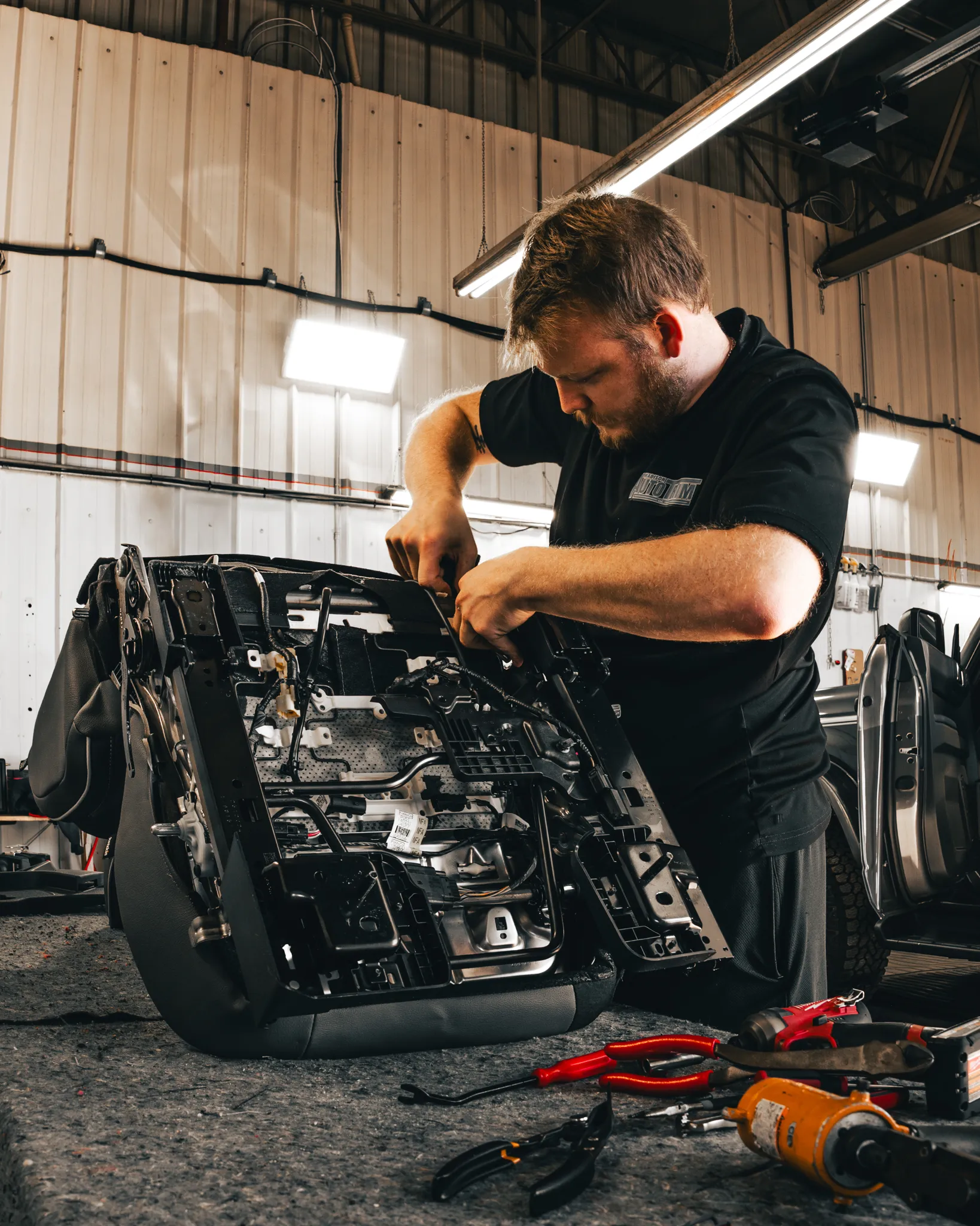 Our expert technicians specialize in Katzkin® Leather interiors, lumbar support, heated, cooled, and massage seat enhancements designed to fit your vehicle perfectly. Whether you’re looking to refresh worn factory seats or completely reimagine your interior, Madison Auto Trim delivers professional, dealer-quality installations backed by decades of experience.